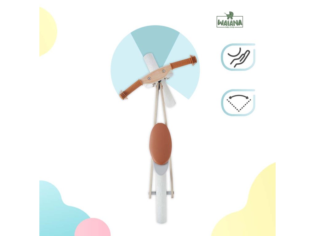 - rukoväť na prenášanie, ktorá je umiestnená na ráme, umožňuje rodičom pohodlne prenášať bicykel, kedy batoľa bude chcieť spoznávať svet na vlastných nohách.