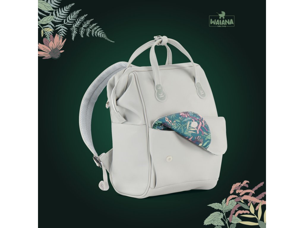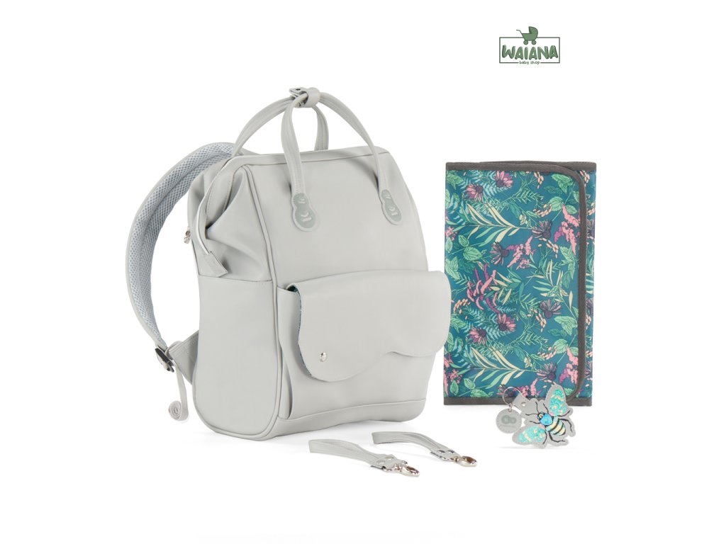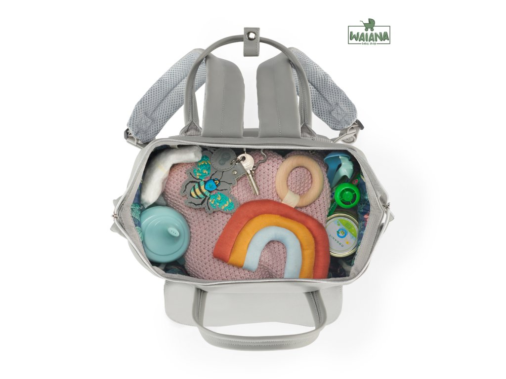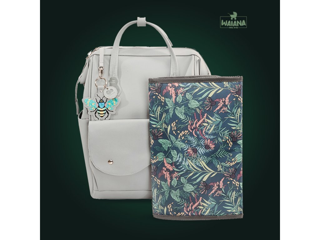 Súprava obsahuje prebaľovaciu podložku. Vďaka tomu vás mokrá plienka nikde neprekvapí – bábätko môžete prebaľovať všade, kde chcete. A navyše v hygienických podmienkach. Podložka ladí so vzorom batohu.