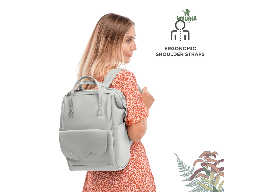 Batoh má široké ramenné popruhy. Je pohodlný a dobre rozloží váhu vecí, ktoré má rodič vo vnútri. Vystužený materiál umožňuje batohu držať správny tvar a tiež je príjemne mäkkýna chrbte.