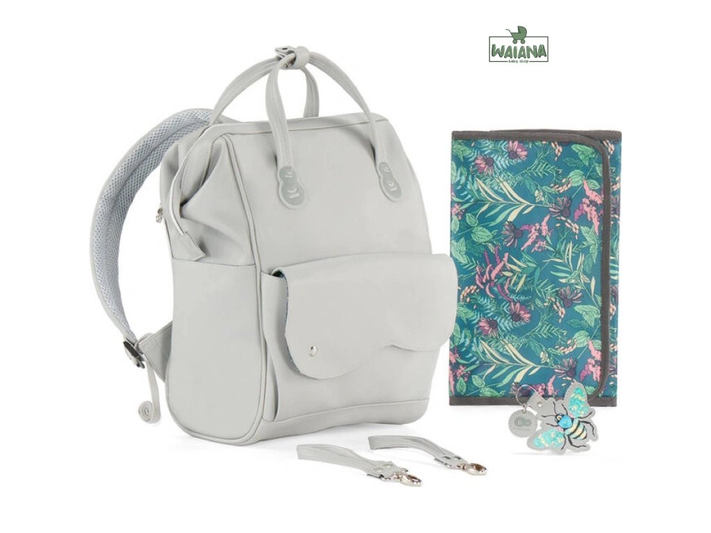 Súprava obsahuje prebaľovaciu podložku. Vďaka tomu vás mokrá plienka nikde neprekvapí – bábätko môžete prebaľovať všade, kde chcete. A navyše v hygienických podmienkach. Podložka ladí so vzorom batohu.