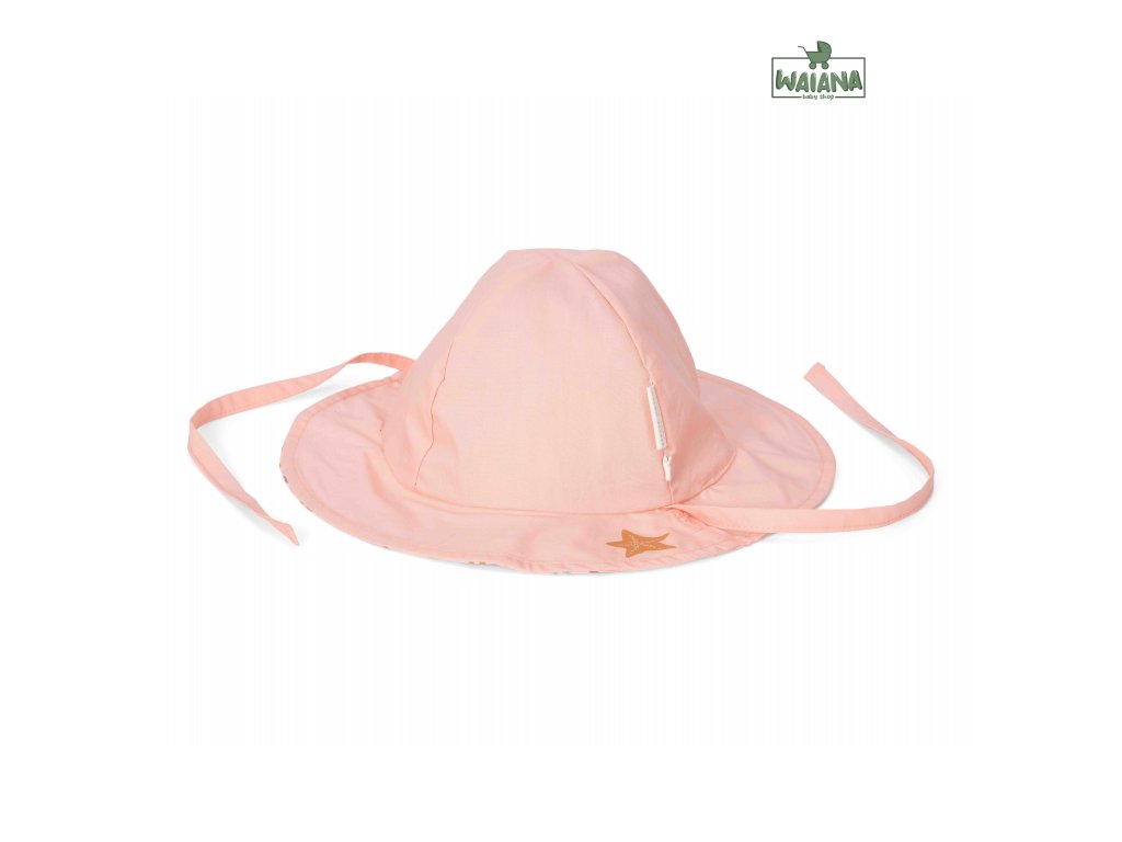 Oboustranný klobouček z UV ochranné tkaniny s krásným potiskem chrání vaše dítě před sluncem při koupání u moře i doma na zahradě. Ať už vaše děti milují skákání ve vlnách, koupání v bazénu nebo si rády staví hrady z písku, s tímto kloboučkem si mohou bezstarostně užívat celý den. Zavazovací šňůrky pomáhají udržet klobouček na hlavě během koupání i hraní. Oboustranné provedení nabízí na výběr dva designy klouboučku - jednobarevný a s potiskem.