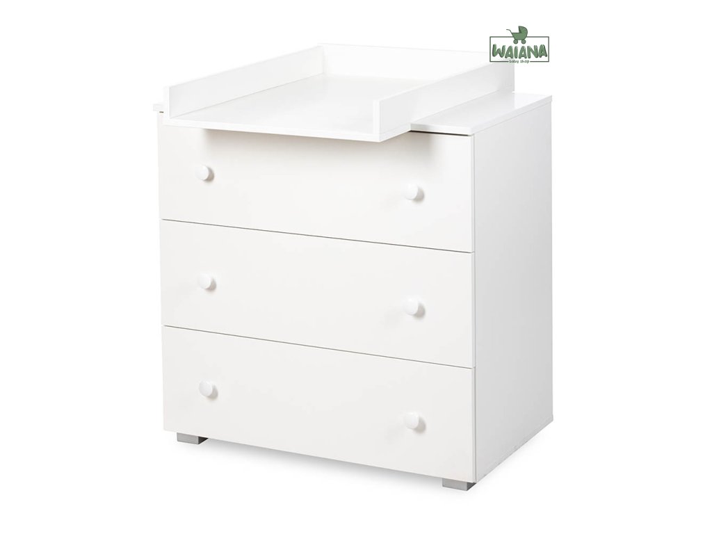 Vďaka nadčasovej bielej farbe a klasickými úchytmi bude komoda Paula užitočná nielen pre bábätká. Odstránením prebaľovacieho pultu z komody získate kus nábytku, ktorý bude moderným a elegantným doplnkom nielen detskej izby.