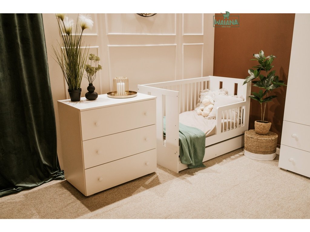 - Komoda je vybavená 3 priestrannými zásuvkami na uloženie oblečenia, hračiek a iných vecí pre deti.