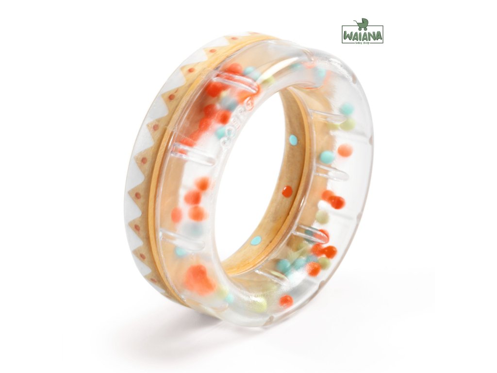 Koliesková hrkálka s guličkami Hrkálka s presýpacími guľôčkami Dreveno-plastová koliesková presýpacia hrkálka. Pri trasení a otáčaní hrkálkou sa malé guľôčky presýpajú cez prekážky. Vzniká príjemný zvuk pripomínajúci ľahký dážď. Bábätko môže pohyb guľôčok sledovať. Hrkálka sa dobre drží, dá sa aj kotúľať a dokonca navliecť bábätku na zápästie. Stimuluje sluch, zrak a motoriku rúk.Drevená časť hrkály je zdobená vzormi Hrkálka je vyrobená z kaučukovníkového dreva z udržateľného hospodárstva. Patrí do kolekcie Baby white. Je to svetlá kolekcia rozvíjajúcich hračiek pre bábätká a batoľatá. Tieto hračky sú koncipované ako milé, harmonické a jedinečné produkty.