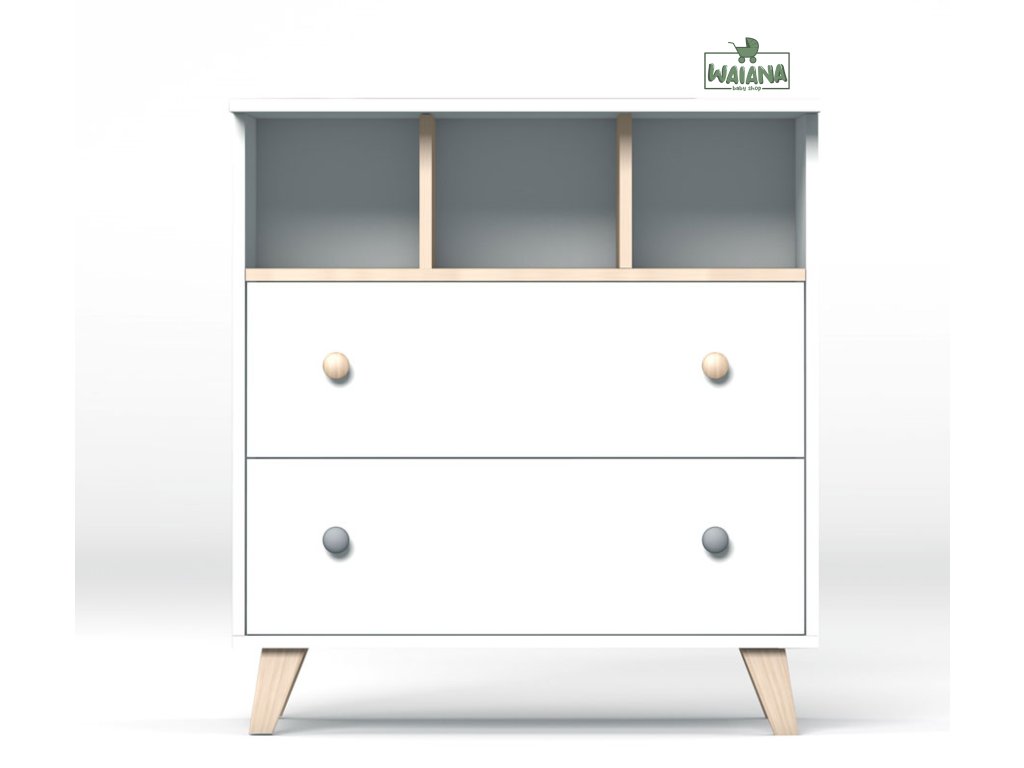 Komoda poskytne dostatok miesta na všetko potrebné pre Vaše bábätko, v hornej časti otvorená polička pre veľmi frekventované potreby alebo pre vecí, po ktorých potrebujete siahnuť ospalá poslepiačky, nižšie dve zásuvky chrániace veci pred prachom. Komoda je optimálne vysoká.