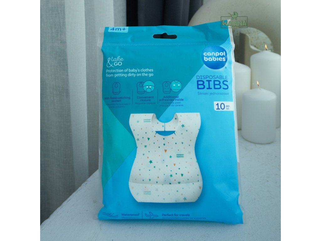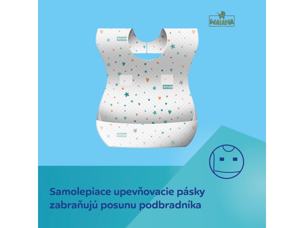 Canpol babies vodeodolné jednorazové podbradníky s vreckom (10ks) predstavujú praktickú alternatívu ku klasickým látkovým podbradníkom.