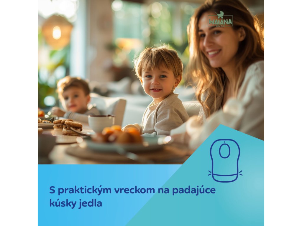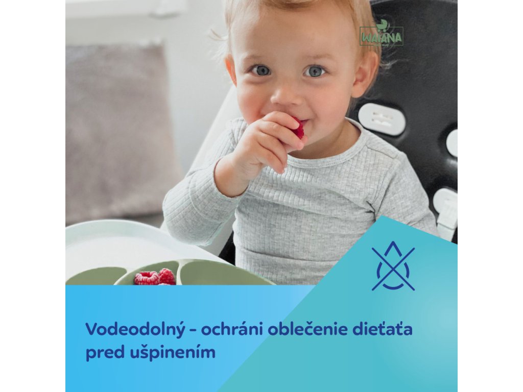 Sú ideálnou voľbou na cestovanie, výlety alebo každodenné použitie. Savá vrchná vrstva a nepriepustná spodná strana chráni oblečenie dieťaťa pred znečistením, zatiaľ čo výklopné vrecko zachytáva padajúce zvyšky jedla.