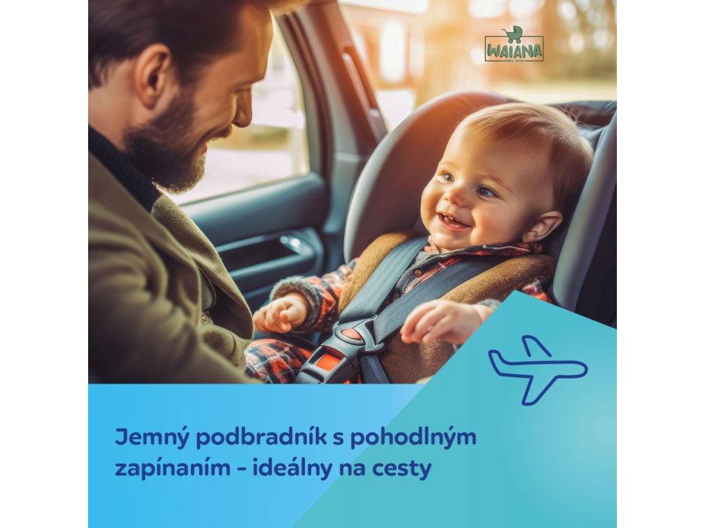 3. Umiestnite podbradník okolo krku dieťaťa a odstráňte ochranný papier z obojstrannej lepiacej pásky. Prilepte podbradník k oblečeniu dieťaťa, aby pevne držal.