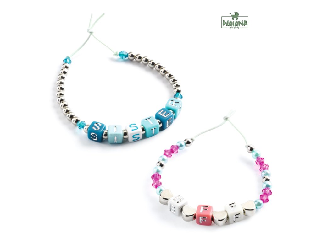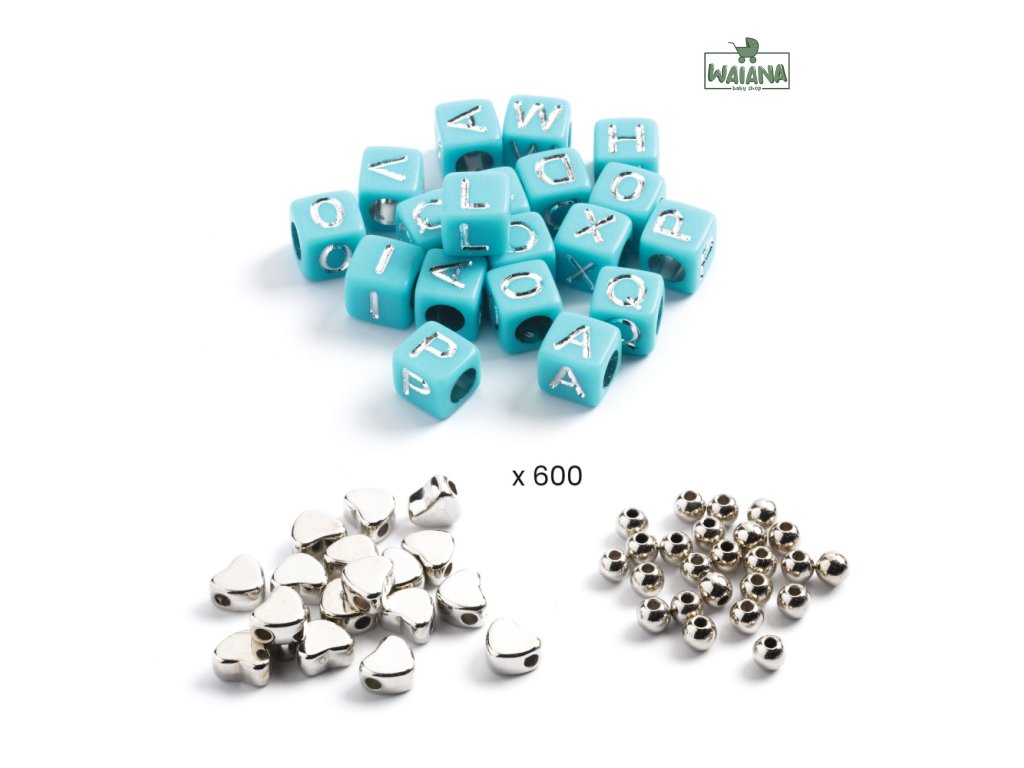 Kreatívna sada Koráliky Písmená – Strieborné ponúka deťom nekonečné možnosti tvorenia vlastných náramkov a šperkov s osobným významom. Pomocou kockových korálok s písmenami si môžu vyskladať mená, prezývky či obľúbené slovíčka a vytvoriť tak originálne doplnky pre seba aj kamarátov. Sada obsahuje až 1000 korálok – farebné písmenkové korálky dopĺňajú menšie strieborné a farebné korálky, medzi ktorými nechýbajú ani jemné srdiečka. Vďaka harmonicky zladeným farbám každý náramok pôsobí vkusne a hravo zároveň. Písmená krásne vyniknú a dodajú šperkom jedinečný charakter. Navliekanie je jednoduché a pohodlné – korálky sa navliekajú na elastickú šnúrku pomocou praktickej ihly. Náramok stačí na konci zaviazať na uzlík a vďaka pružnému materiálu sa ľahko navlieka aj vyzlieka z ruky.