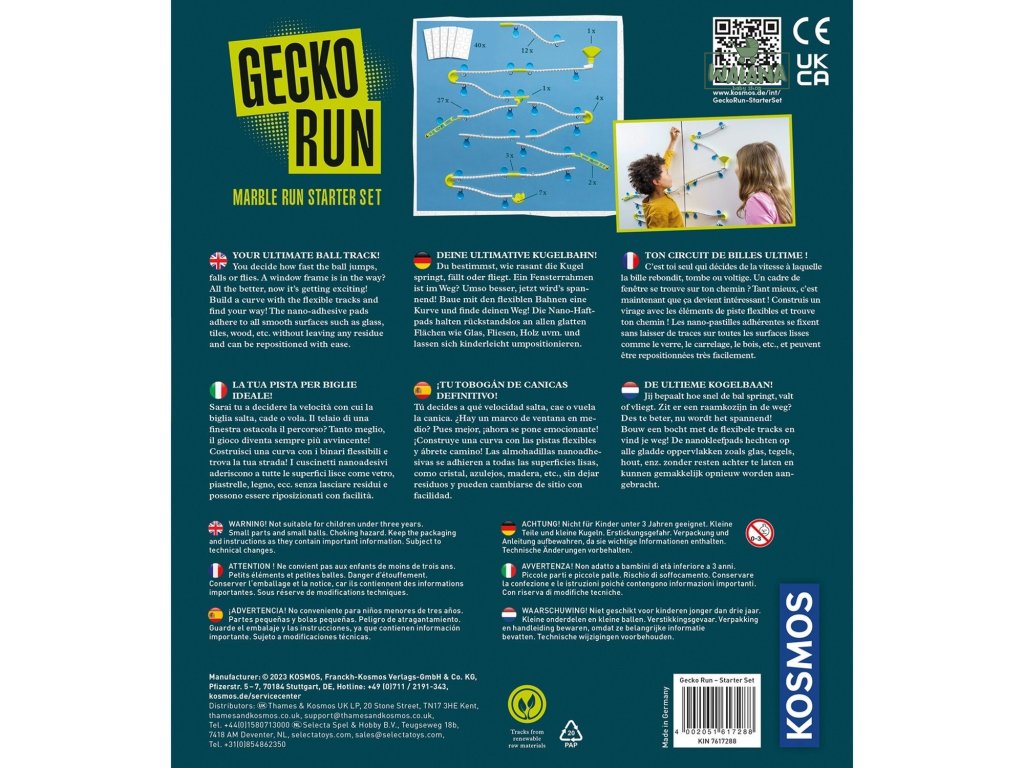 Kosmos Gecko Run Starter Set je inovatívny vzdelávací stavebnicový set, ktorý umožňuje deťom skúmať fyzikálne zákony prostredníctvom hry. Deti si môžu zostaviť svoj vlastný gravitačný závodný systém na stene, ktorý využíva gélovú technológiu, inšpirovanú schopnosťou gekónov pohybovať sa po hladkých povrchoch. Deti môžu vytvárať rôzne dráhy a sledovať, ako guličky prekonávajú prekážky, čím sa učia základné princípy mechaniky, gravitácie a pohybu.