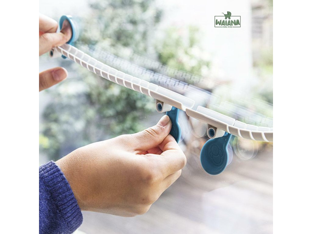 Dráhové komponenty sú pripevnené na stenu pomocou špeciálnej gélovej technológie, ktorá nepoškodzuje povrchy a je opakovane použiteľná.