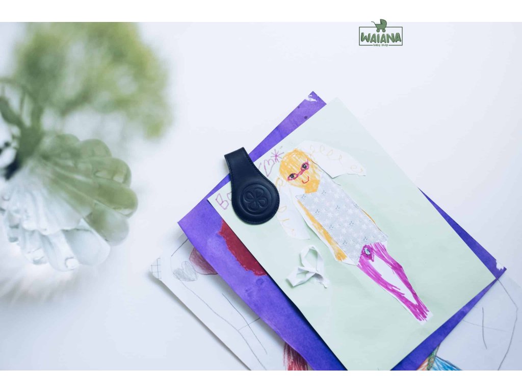Multifunkčné magnetické obojsranné klipy Cloby, v čiernej farbe, vyrobené z vysokokvalitnej kože.