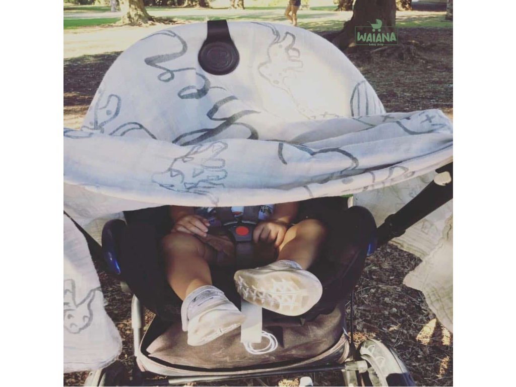 - zafixujte plienku tak, aby fungovala ako prikrývka pri dojčení, ochrana pred slnkom alebo ako podbradník,
