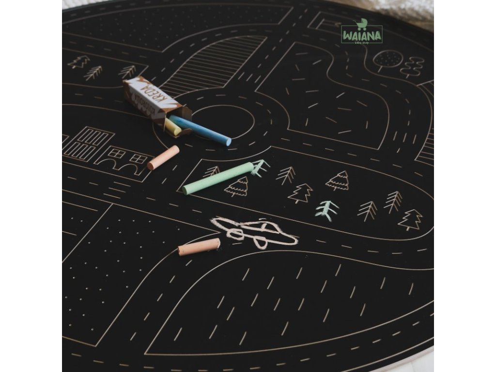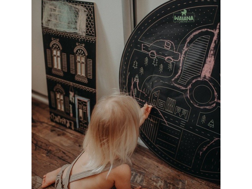 Veľká drevená tabuľka so 4 kriedami rozvíja grafomotorické zručnosti, podporuje kreativitu a fantáziu. Maľovanie kriedou je skvelou zábavou a cvičením manuálnych zručností a jemnej motoriky. Napomáha v príprave detí na budúce kreslenie v škole. Tréning koordinácia oko-ruka podporuje jazykové zručnosti a vytváranie nových nervových spojení v mozgu.