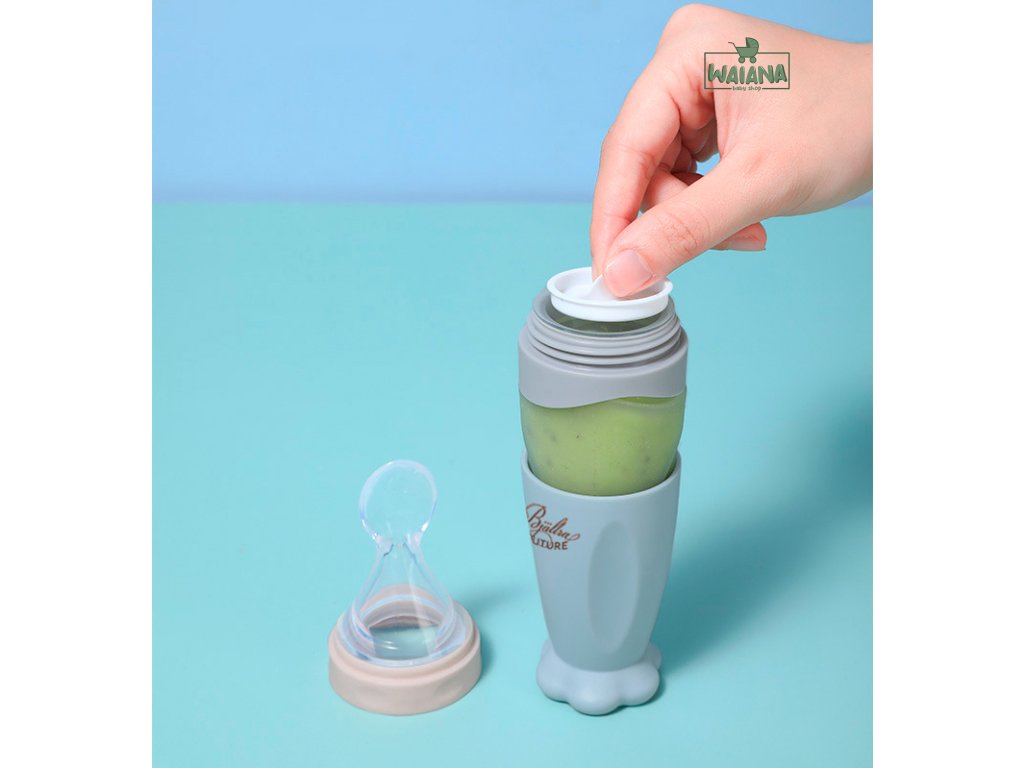Nastal čas na ovocné a zeleninové pyré? Kŕmitko Vám pomôže zobrať so sebou tekuté alebo polotuhé jedlo kamkoľvek pôjdete. Elegantné silikónové kŕmitko vám pomôže bez problémov nakŕmiť vaše dieťa kašou alebo pyré zo zeleniny alebo ovocia. Obsah kŕmitka ľahko vytlačíte na vstavanú lyžičku a následne po kŕmení nádobu uzavriete, aby sa nič nevylialo