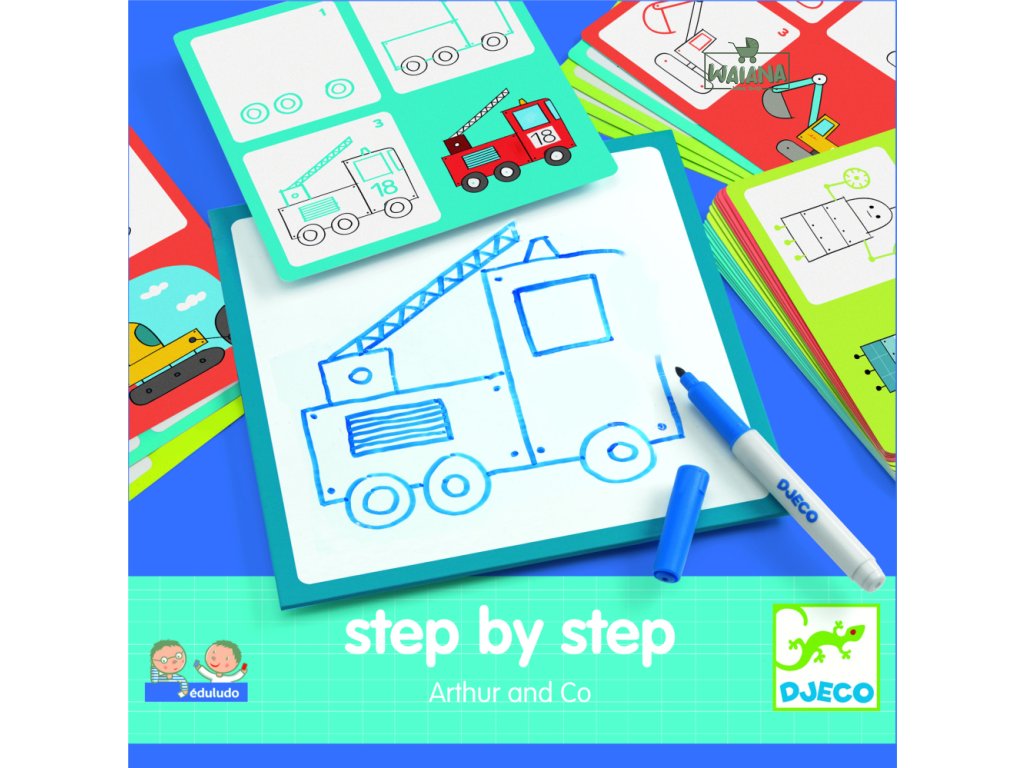 Krok za krokom – Autá je zábavná edukačná sada z kolekcie Eduludo, ktorá deti učí kresliť autá a ďalšie „chlapčenské“ motívy jednoduchým a zrozumiteľným spôsobom. Pomocou názorných predlôh sa dieťa učí kresliť krok po kroku, bez stresu a s radosťou z každého podareného obrázka. Kreslenie sa tak prirodzene mení na hru, ktorá rozvíja trpezlivosť, sústredenie aj sebadôveru. Dieťa kreslí zotierateľnou fixkou na tabuľku podľa predlohových kariet. Hotový obrázok môže jednoducho zotrieť a skúšať znova, čo podporuje učenie bez obáv z chýb a motivuje k opakovaniu.