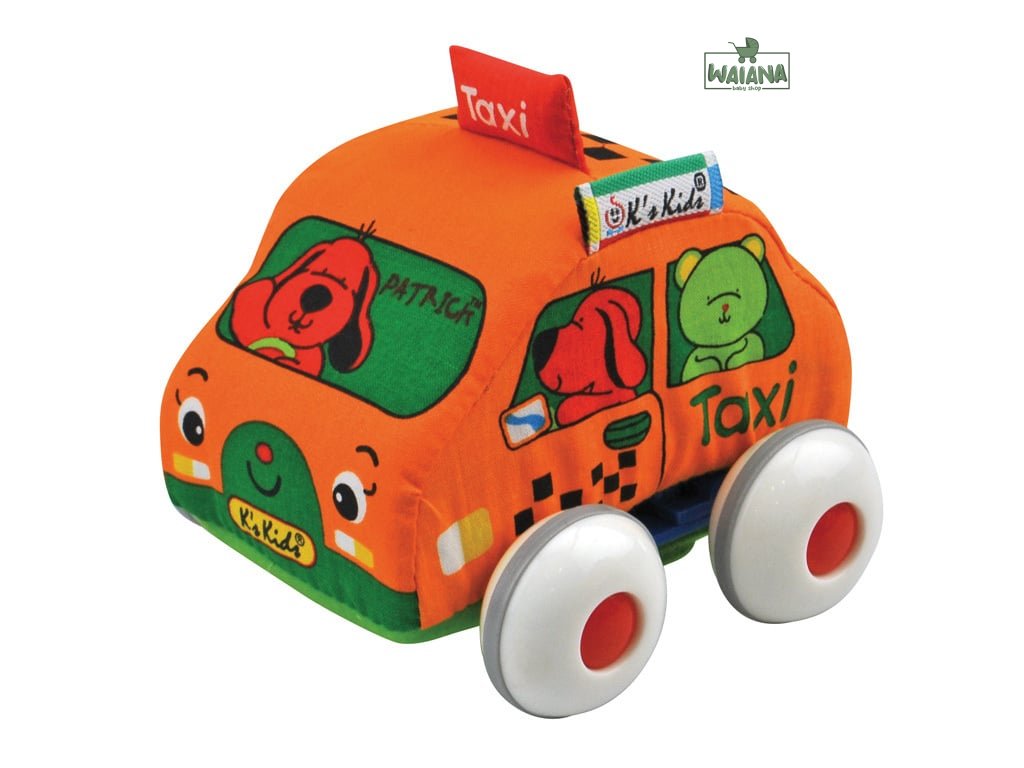 Ks Kids Autíčko s nápisom Taxi je mäkká, farebná a bezpečná hračka pre deti, ktorú poháňajú jednoduchým potiahnutím. Autíčko má dve časti - podvozok s pohonom a mäkké telo. Keď dieťa autíčko potiahne a pustí, vozidlo sa samo pohne dopredu, čím stimuluje jeho záujem o pohyb a hru.
