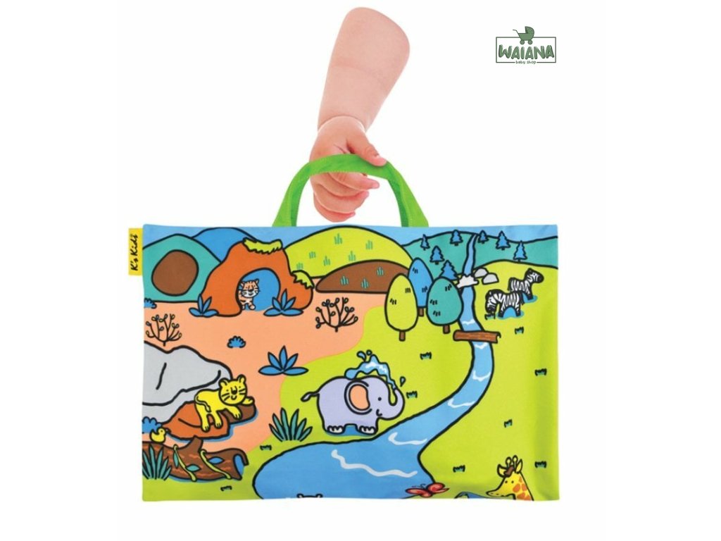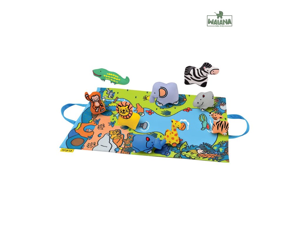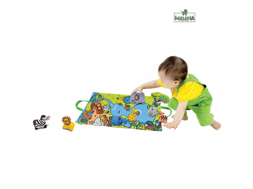 Prenosná edukačná podložka Džungľa s figúrkami zvieratiek ponúka bohatú kombináciu zábavy a učenia. S farebnou podložkou znázorňujúcou džungľu a 9 figúrkami známych divokých zvierat sa vaše dieťa naučí rozpoznávať zvieratá a priradiť ich k ich prirodzenému prostrediu. Podložka je ľahká, má rúčky na prenášanie a je umývateľná pri teplote 30°C.