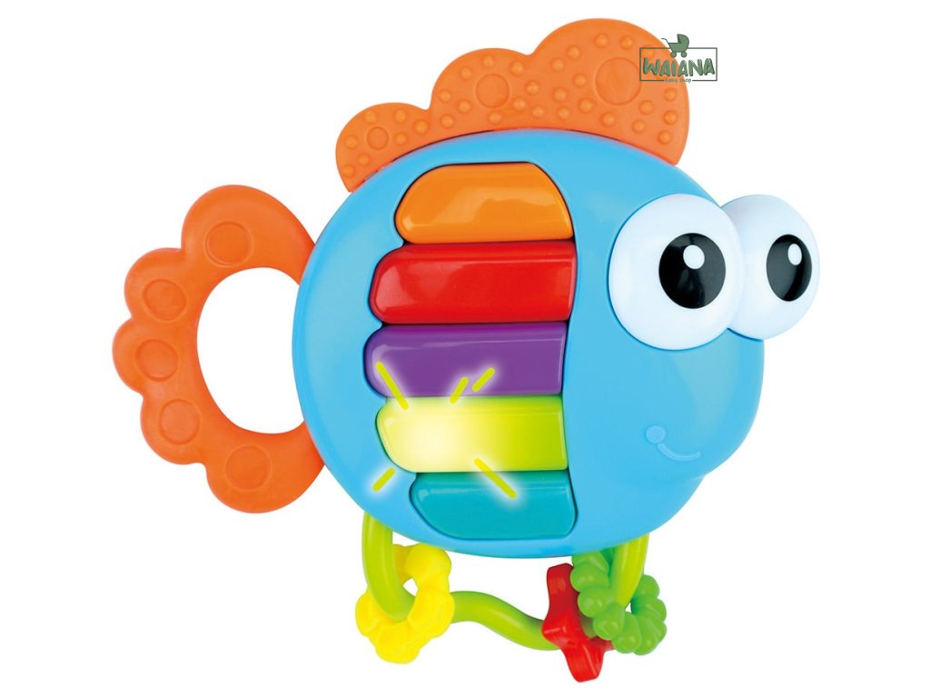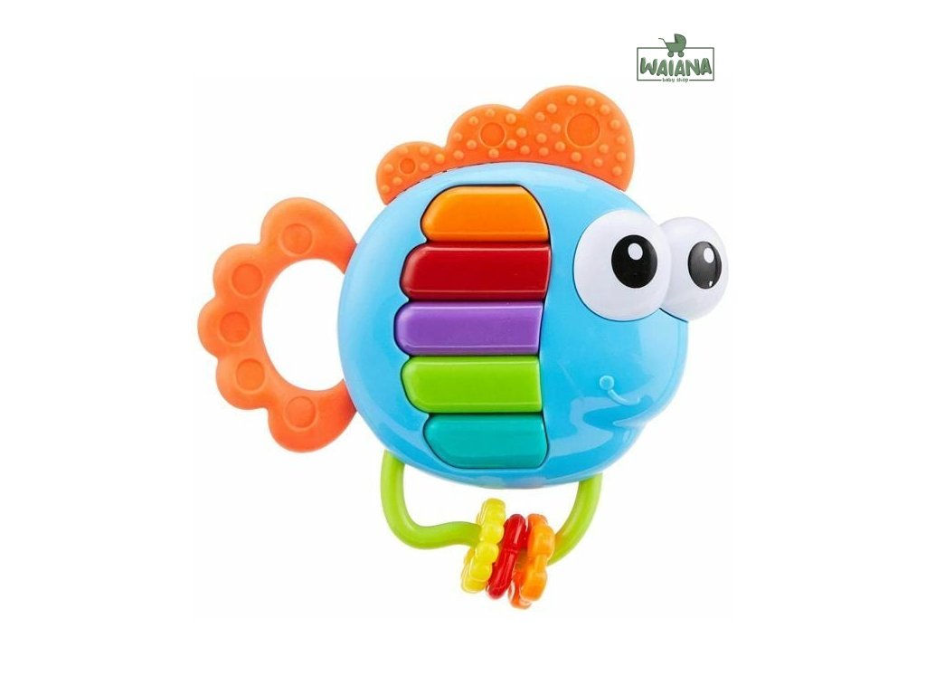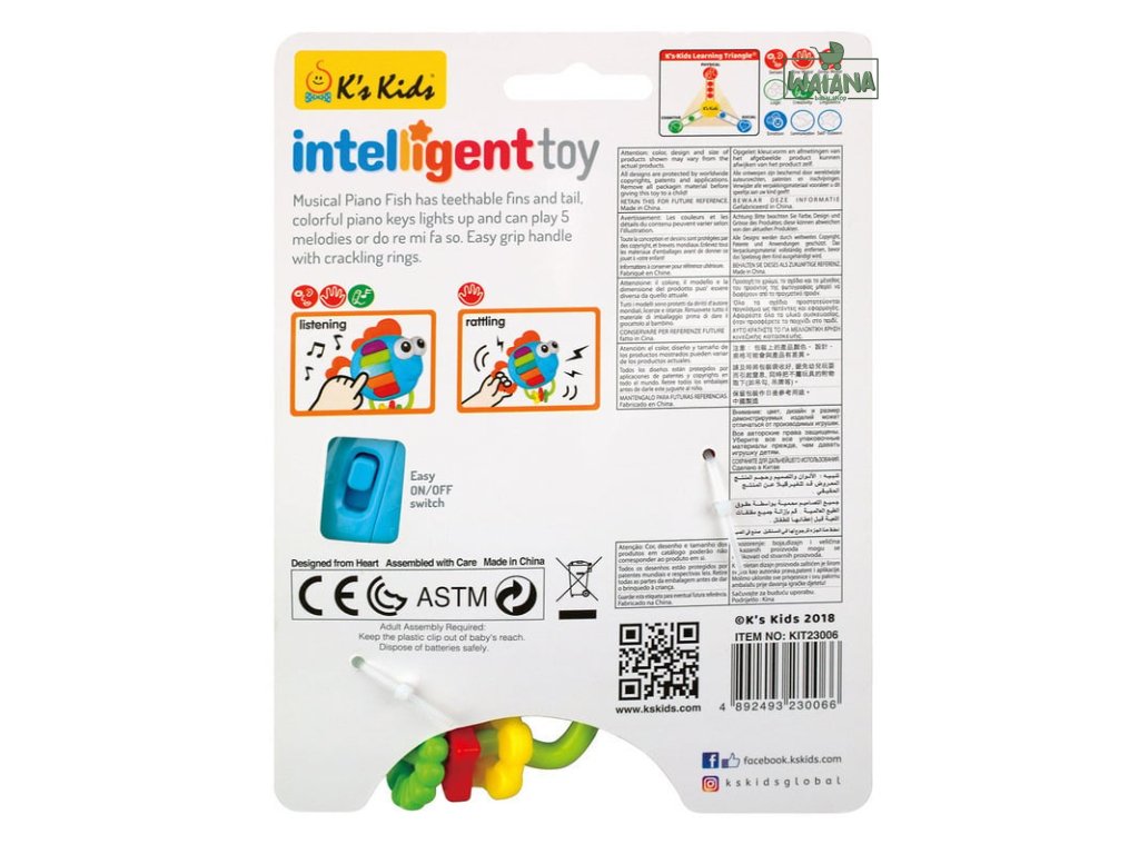Hudobná rybička od K's Kids prináša zábavu a vzdelávanie v jednom! Je vybavená 5 farebnými klávesmi klavíra, ktoré po stlačení hrajú rôzne melódie a rozžiaria sa, čo dieťaťu poskytuje vizuálnu aj zvukovú stimuláciu. Pre jednoduché uchopenie má rybička praktickú rúčku s hrkajúcimi prvkami, ktoré navyše podporujú rozvoj jemnej motoriky. Rybie plutvy sú vyrobené tak, aby dieťa mohlo bezpečne používať hračku aj ako hryzátko, čím sa zmierni nepohodlie pri prerezávaní zúbkov.