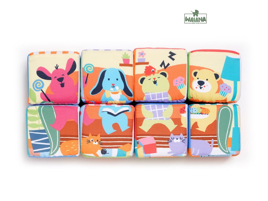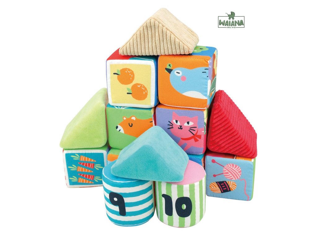 Kocky sú vyrobené z mäkkého materiálu, ktorý je príjemný na dotyk a bezpečný pre deti. Sú ľahké a ideálne tvarované pre malé ruky, čo deťom uľahčuje ich držanie, otáčanie a spájanie.Žiarivé farby a rôznorodosť vzorov podnecujú detskú zvedavosť a pomáhajú deťom lepšie rozlišovať tvary, farby a vzory.