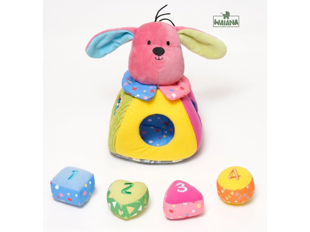 Cieľ: Jemná motorika a uchopenie – Povzbudzujte dieťa, aby chytilo kocky do rúk, čím sa trénuje presnosť a kontrola pohybov.Cieľ: Stimulácia zmyslov – Dieťa môže objavovať rôzne textúry a zvuky (hrkálky, šušťanie) skryté v blokoch a triediči. Týmto spôsobom rozvíja zmyslové vnímanie.Cieľ: Pohyblivosť rúk a otáčanie – Dieťa môže otáčať Patrickovu hlavu, čo mu pomáha precvičovať motoriku oboch rúk a rozvíjať koordináciu pohybov.