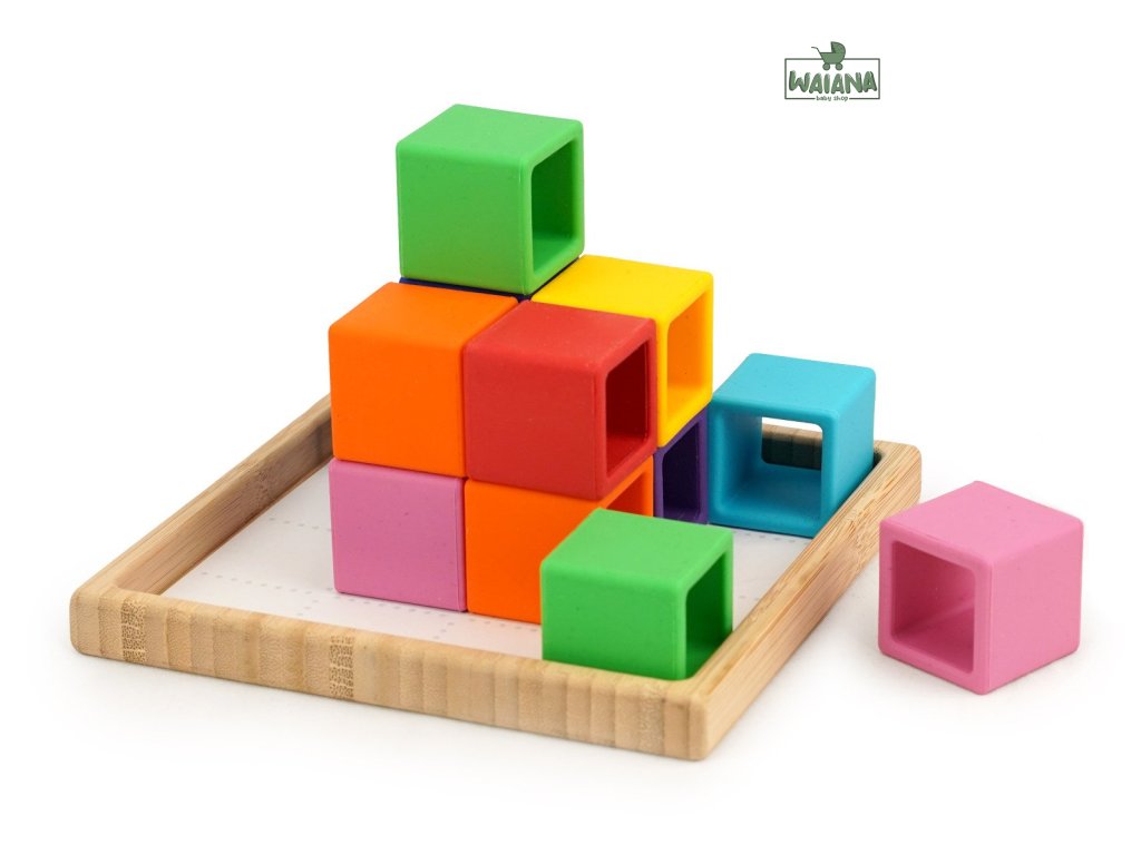 Manipulácia s kockami podporuje rozvoj jemnej motoriky a koordinácie ruka-oko, čo je kľúčové pre mnohé každodenné činnosti.