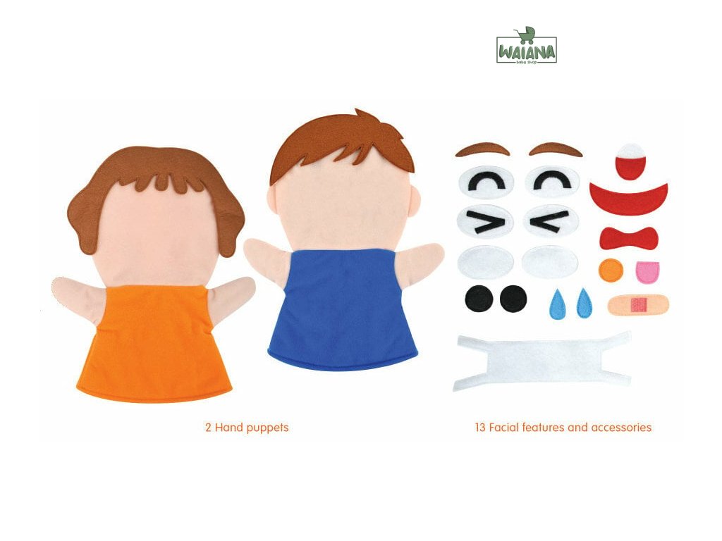 Sada obsahuje 13 rôznych čŕt tváre a doplnkov, ktoré rodičia môžu kombinovať na bábkach, aby zobrazili rôzne emócie. To pomáha deťom pochopiť, ako sa prejavujú rôzne pocity a čo tieto výrazy znamenajú.