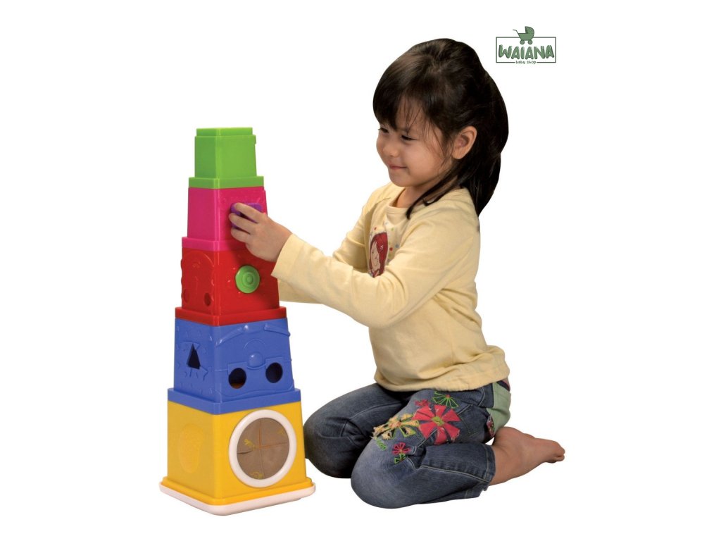 Hračka tiež prispieva k zlepšeniu koordinácie ruka-oko, rozvoju jemnej i hrubej motoriky a stimuluje zmysly prostredníctvom pestrých farieb. Dieťa môže triediť tvary, hádzať bloky do vedier alebo ich stavať do veže, čím si precvičuje trpezlivosť, presnosť a priestorovú orientáciu.