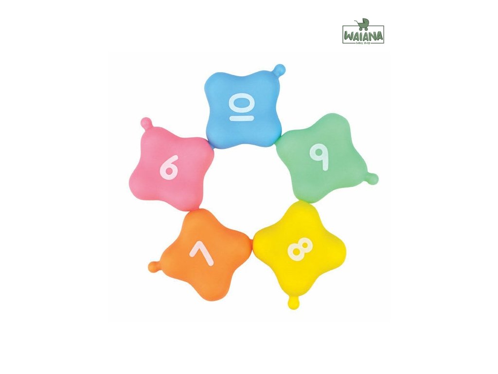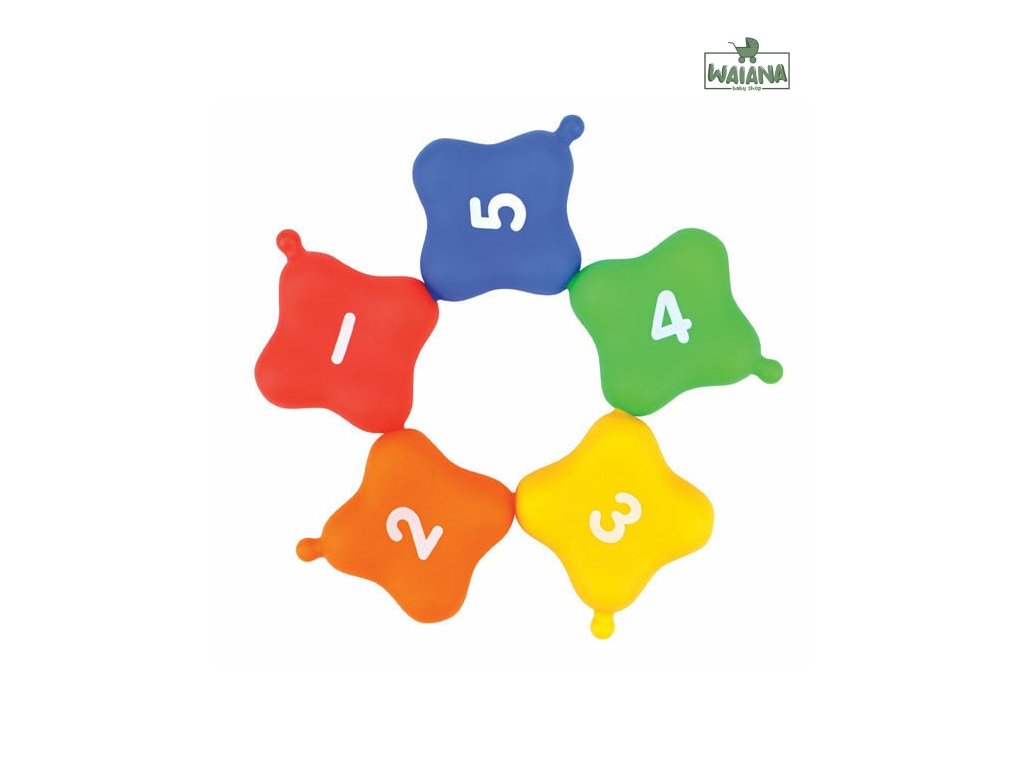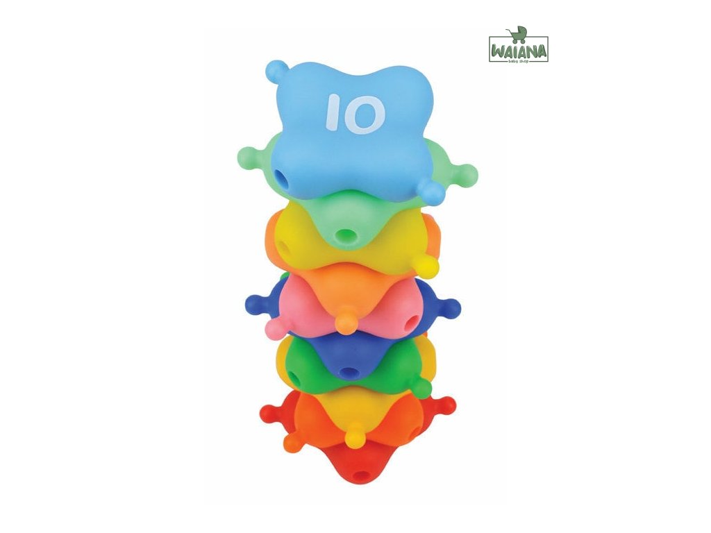 Spojovacie štvorce majú rôzne farby a čísla, ktoré podporujú rozpoznávanie farieb a základné matematické zručnosti.