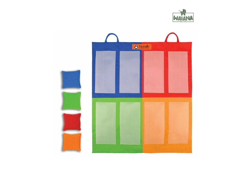 - 1 podložka na zavesenie- 4 farebné vrecká na hrášok