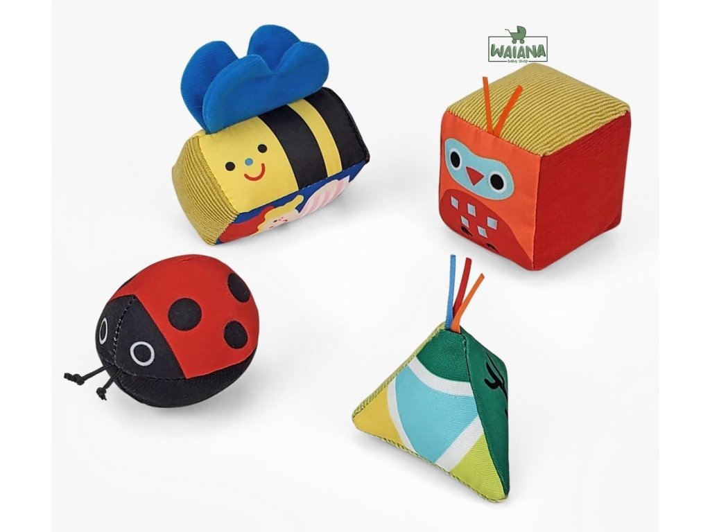 - Veľké, mäkké kocky z materiálu vhodné pre najmenších prieskumníkov.- Menšie plastové kocky zložitejších tvarov pre staršie deti.