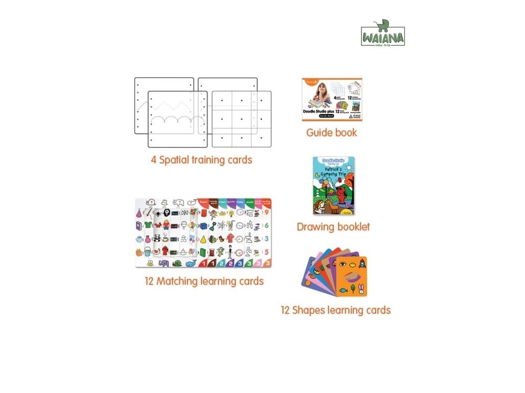 Kresliace štúdio pomáha deťom precvičiť písanie v konkrétnom priestore a zlepšiť kontrolu nad pohybom rúk. Špeciálne cvičné kartičky sú navrhnuté na podporu pochopenia polohy, smeru a vzdialenosti čiar.