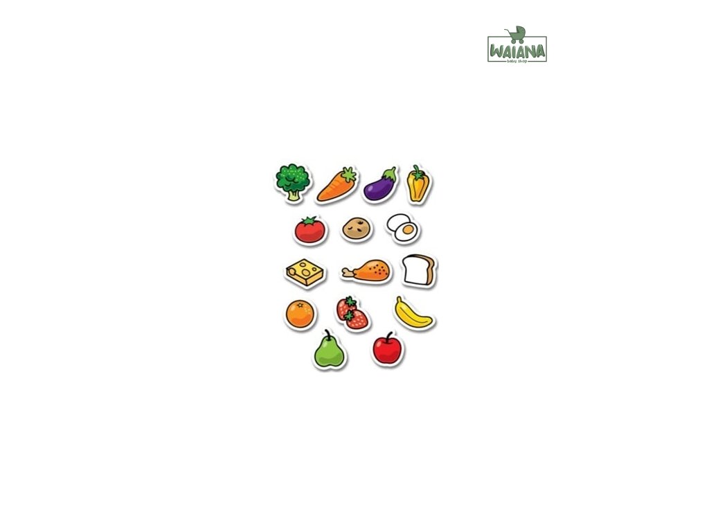 34 kariet s potravinami: Každá karta obsahuje ilustráciu konkrétnej potraviny, či už ide o ovocie, zeleninu, mliečne výrobky, mäso, alebo iné jedlá. Rodičia môžu deťom ukázať rôzne potraviny, vysvetliť, ako vyzerajú, ako chutia, a prečo sú pre telo dôležité. Tento proces pomáha deťom nielen s rozširovaním ich slovnej zásoby, ale aj s rozpoznávaním jedál v reálnom živote.