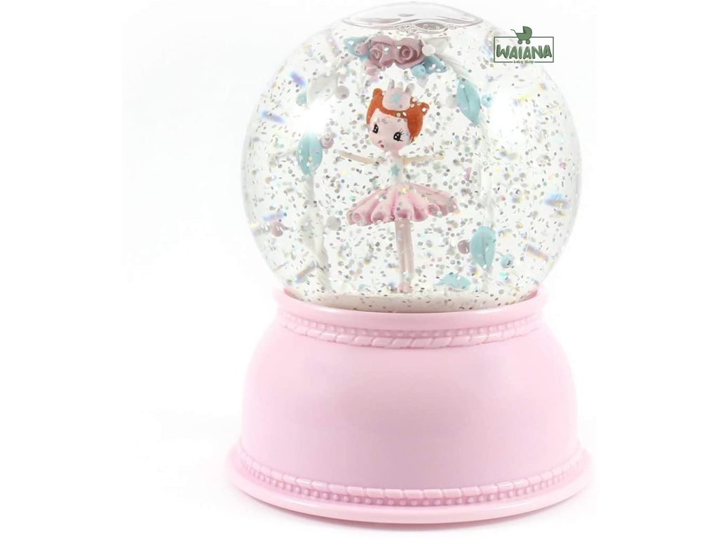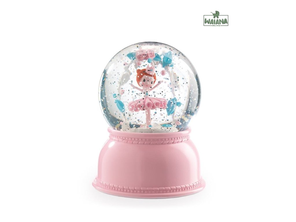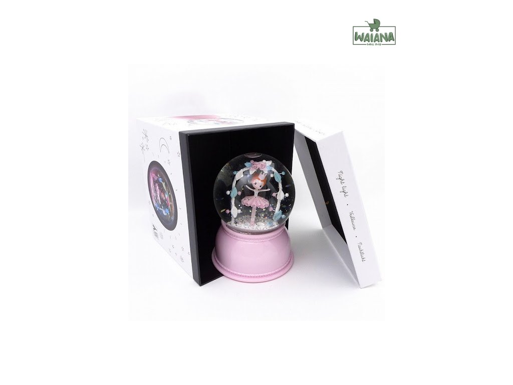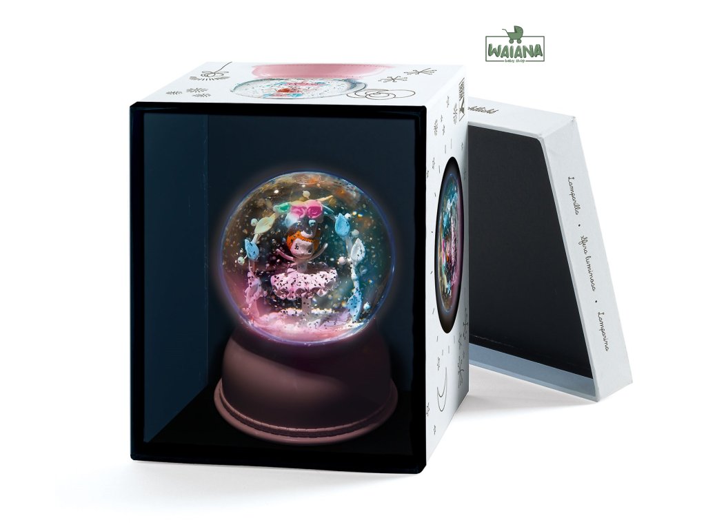 Kúzelná lampa pre rozprávkové zaspávanie. Kúzelné nočné svetlo, svetelná a snežná guľa v jednom. S očarujúcou figúrkou baleríny pod kvetovým oblúkom. Ideálny darček po ktorom túži každé malé dievča.Časovač zabezpečí, že sa svetlo automaticky vypne. V zapnutej guli lietajú trblietky a menia sa farby príjemného LED svetla. Tichý mechanizmus má aj časovač, ktorý svetlo automaticky vypne. Guľa s podstavcom je z pevného plastu. Vnútri gule je voda. Na spodnej strane podstavca je vypínač na zapnutie/vypnutie svetla. Svetlo môžete vypnúť manuálne, alebo sa po 45 min. vypne automaticky. Vložte 3 AA (tužkové) batérie (nie sú súčasťou balenia). Rozmery: 11 x 11 x 14 cm