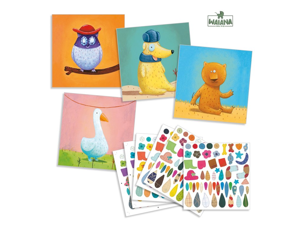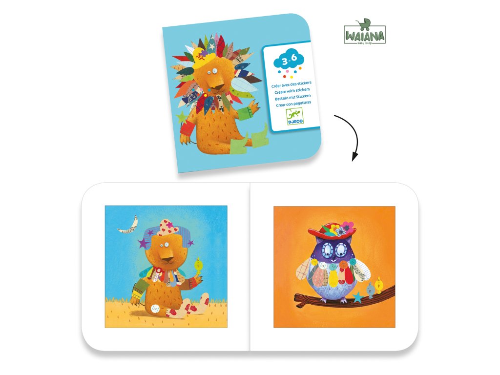 Lepenie obrázkov Zvieratká Tvorenie s nálepkami. S touto sadou si môžete vytvoriť vlastné zvieratko. Tvorenie s papierom bude deti rozhodne baviť.Vytvorte si jedinečné zvieratká z rôznych druhov nálepiek. Nálepky dotvoria obrázky na predlohách - zábavná činnosť s prekásnymi výsledkami. Podľa vlastnej fantázie si môžete vytvoriť prekrásne obrazy nalepovaním pierok, kvetov, lístkov a rozličných doplnkov na zvieratká. Tvorením dieťa zdokonaľuje jemnú motoriku, rozvíja fantáziu a trpezlivosť.Balenie obsahuje: 4 x 4 predlohy, 6 hárkov s nálepkami (= stovky nálepiek) a návod.