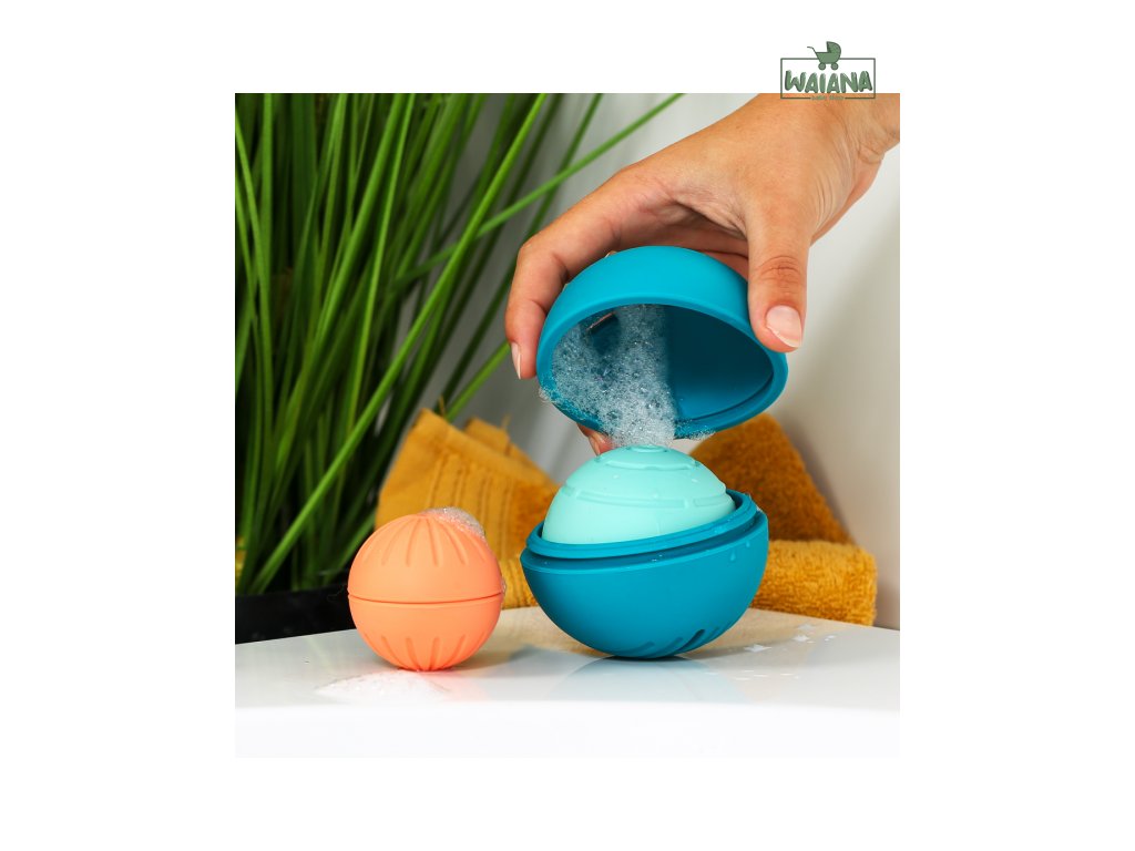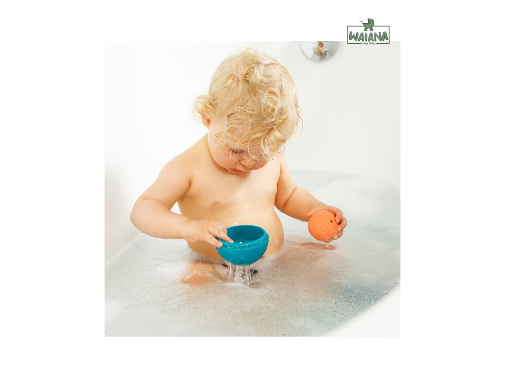 - Díky různě velkým otvorům se míčky skvěle hodí i do koupele – voda jimi protéká pokaždé jinak a zajišťuje originální smyslový zážitek