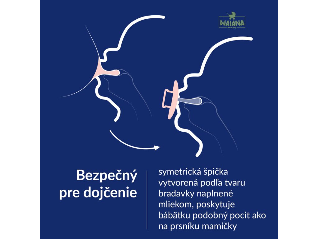 Symetrická špička vytvorená podľa tvaru bradavky naplnenej mliekom, poskytuje bábätku podobný pocit ako na prsníku mamičky.