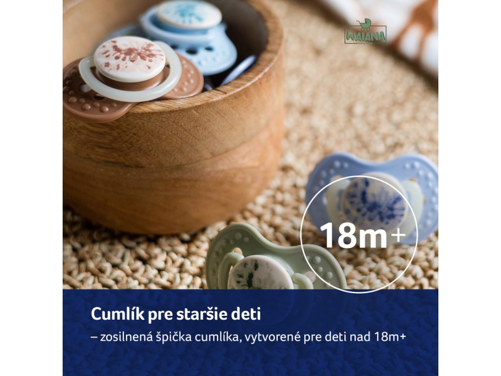 Silikónová špička cumlíka je zosilnená a tým odolnejšia proti hryzeniu. Praktické v období intenzívneho vývoja zubov a ďasien.