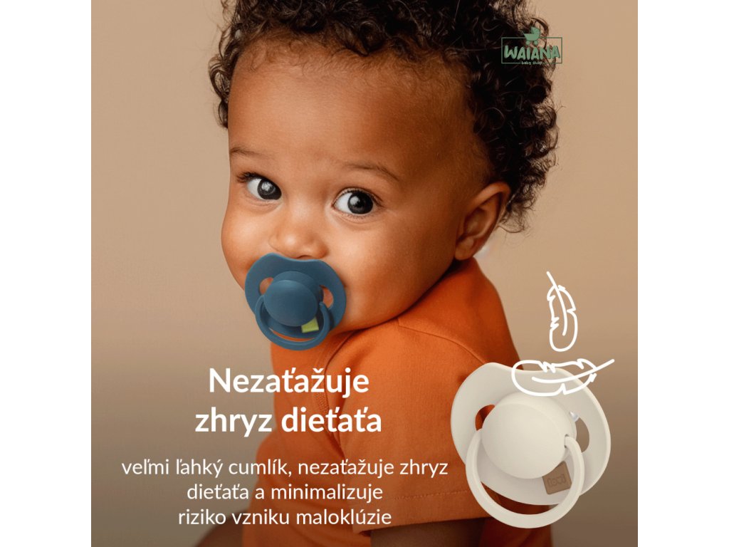 Veľmi ľahký cumlík, nezaťažuje zhryz dieťaťa a minimalizuje riziko vzniku maloklúzie.