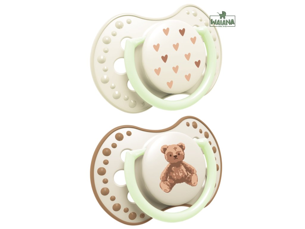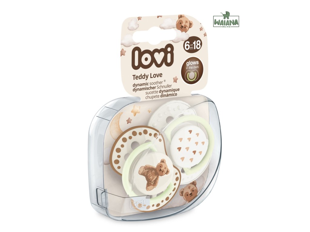 LOVI Cumlík svietiaci silikónový dynamický TEDDY LOVE 6-18m 2ks