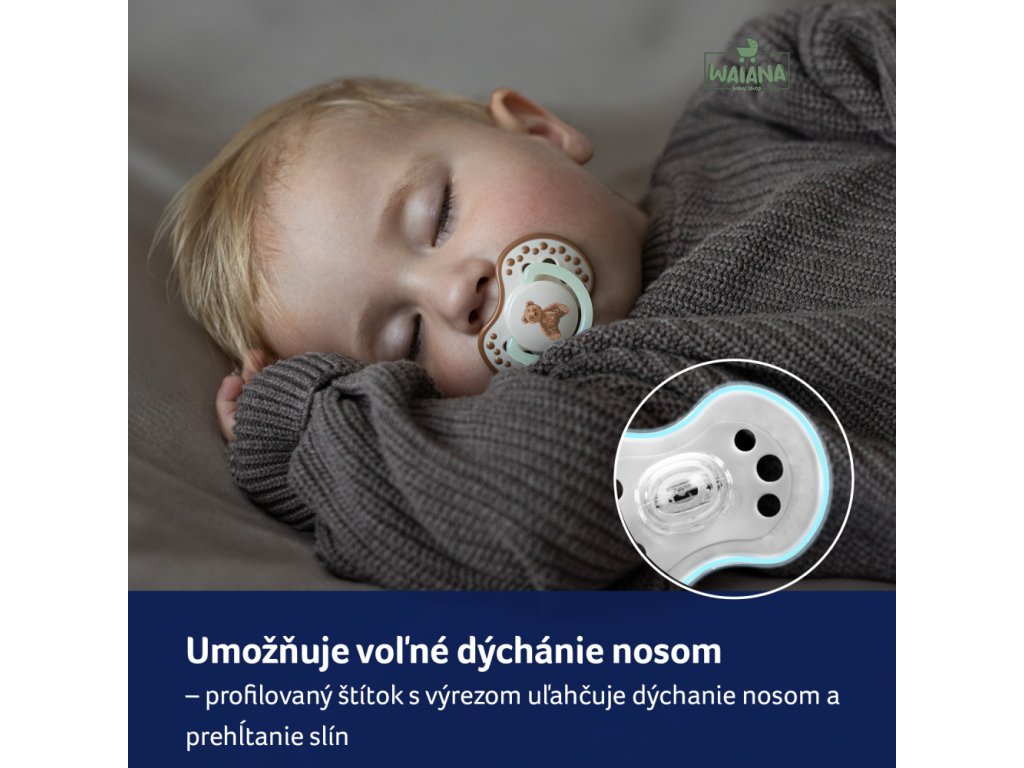 Veľmi ľahký cumlík, nezaťažuje skus dieťaťa a minimalizuje riziko vzniku maloklúzie.