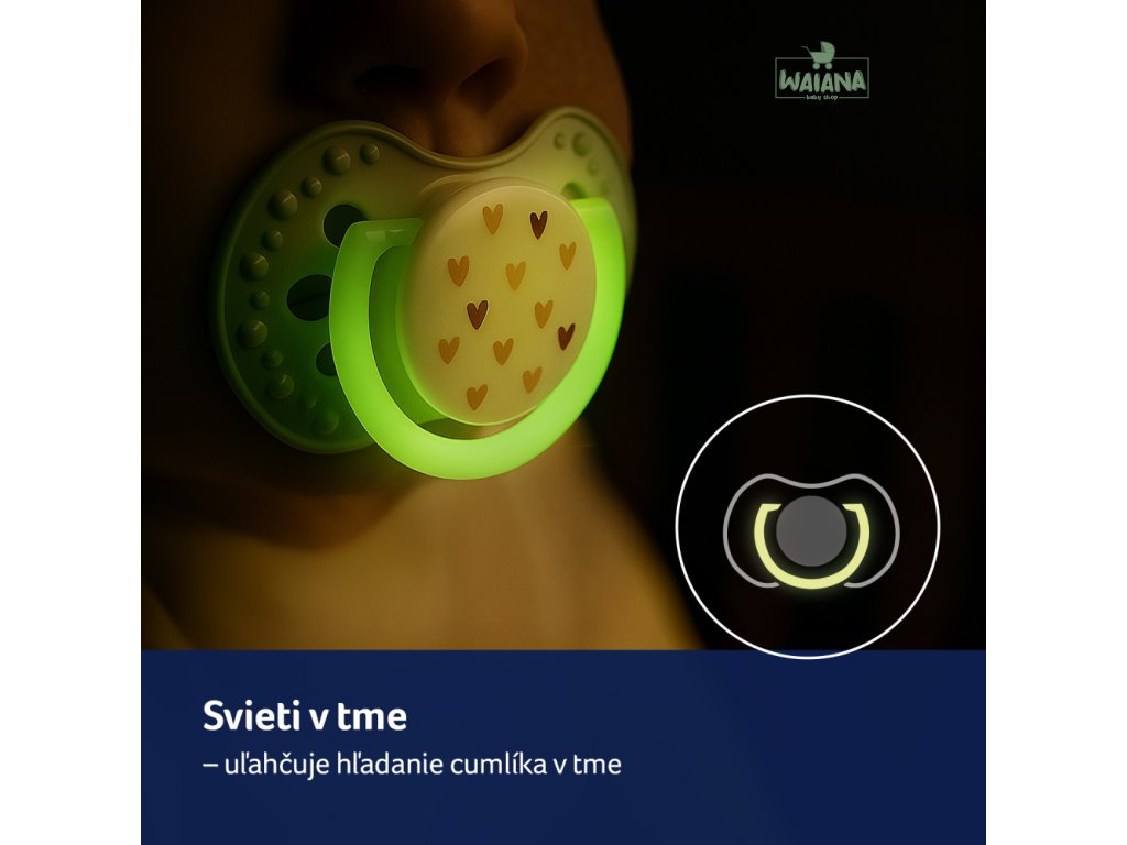 Nenechávajte cumlík na priamom slnečnom svetle, v blízkosti tepelného zdroja alebo v dezinfekčných prostriedkoch dlhšie, než sa odporúča – môžete spôsobiť oslabenie gumičky cumlíka. Informácie o výrobku uchovajte pre prípadné neskoršie použitie. Číslo série je uvedené na obale