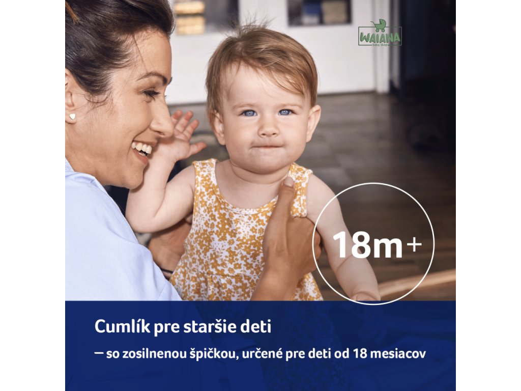 Pred každým podaním dieťaťu skontrolujte kvalitu cumlíka. Venujte cumlíku zvýšenú pozornosť potom, čo dieťaťu vyrastú prvé zúbky. Vyskúšajte kvalitu špičky dôkladným natiahnutím všetkými smermi. Pri prvých známkach poškodenia cumlík ihneď vyhoďte a už ďalej nepoužívajte. Používajte iba také držiaky cumlíkov, ktoré zodpovedajú požiadavkám normy EN12586. Nikdy nepripevňujte cumlík na rôzne šnúrky, šnúrky či stužky odevu. Dieťa sa môže zadusiť. Nenechávajte cumlík na priamom slnečnom svetle, v blízkosti tepelného zdroja alebo v dezinfekčných prostriedkoch dlhšie, než sa odporúča - môžete spôsobiť oslabenie špičky cumlíka. Odstránený kryt uchovávajte mimo dosahu dieťaťa - predídete možnému zaduseniu.