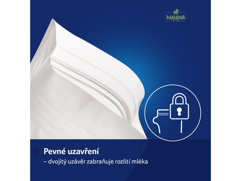 Tesniaci uzáver - Dvojité, silné uzavretie vrecka zabraňuje náhodnému rozliatiu mlieka.