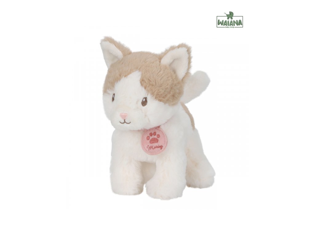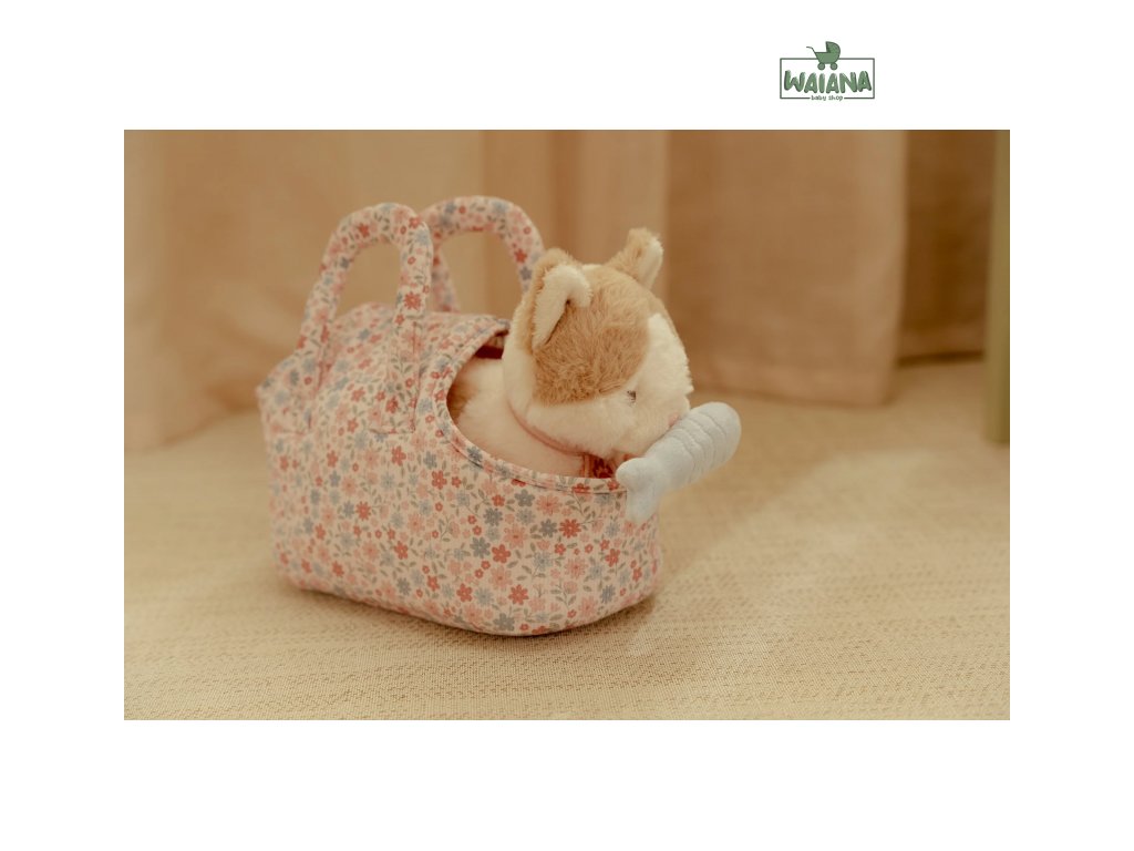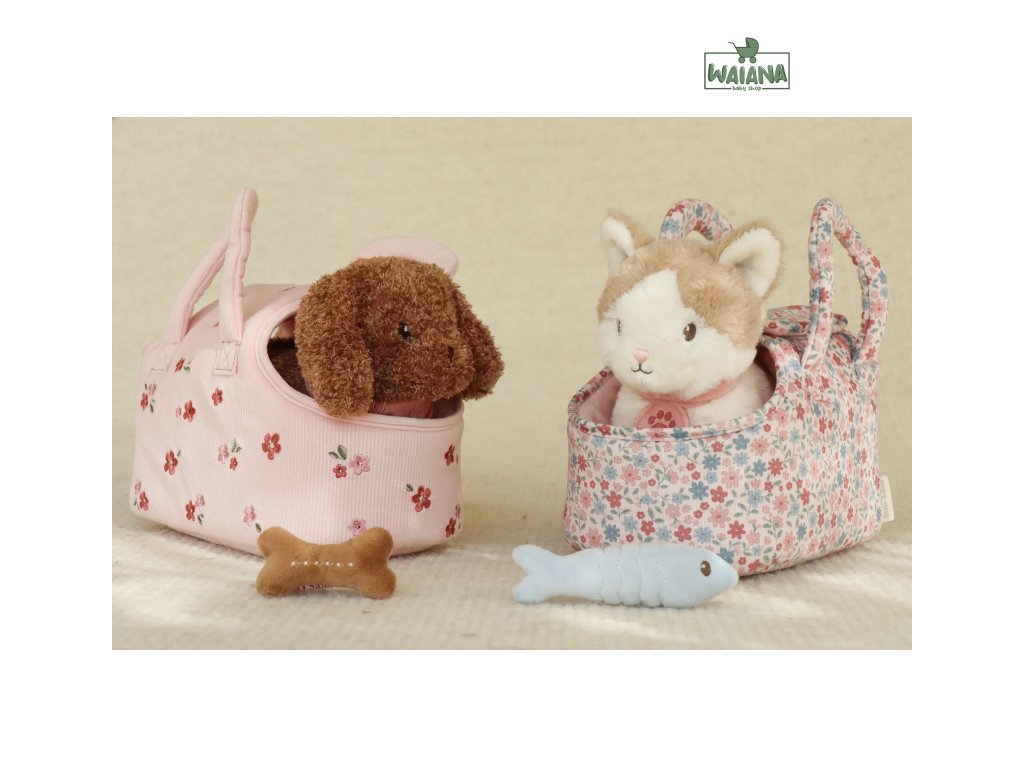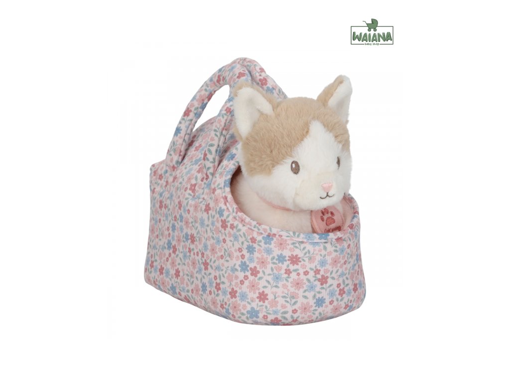 Mačička prichádza v elegantnej kvetovanej taške s predným otvorom, aby mohla zvedavo vykukovať von. Vďaka tomu si ju deti môžu vziať kamkoľvek – na prechádzku, na výlet, do škôlky alebo napríklad k starým rodičom. Na krku má prívesok so svojim menom. Plyšová rybka na hranie má vo vnútri magnet, takže drží mačičke pri papuľke.
