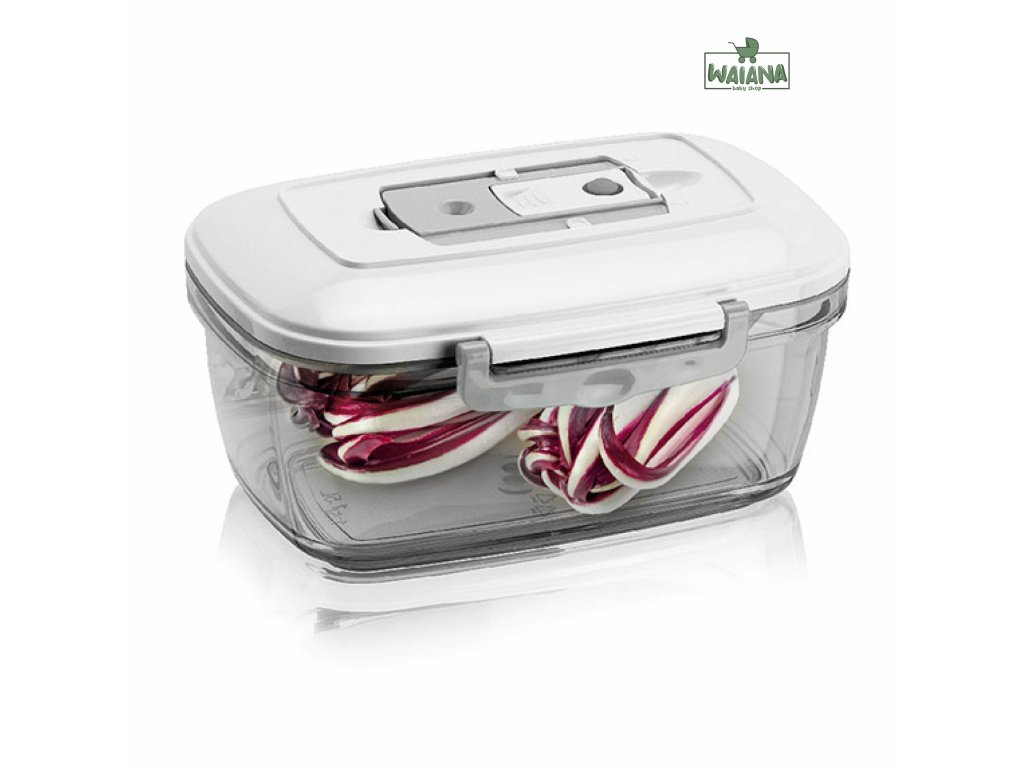 Nádoby na vákuové skladovanie potravín. Výrobky môžu zostať čerstvé až 5-krát dlhšie. Môžu byť uložené v chladničke alebo mrazničke, môžu sa umyť, použiť v mikrovlnnej rúre. Môžu byť použité pre vákuové baliace zariadenia od rôznych výrobcov.
