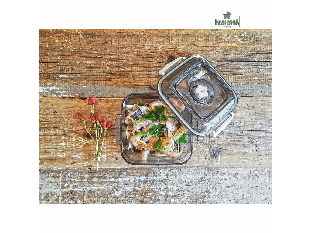 Nádoby na vákuové skladovanie potravín. Výrobky môžu zostať čerstvé až 5-krát dlhšie. Môžu byť uložené v chladničke alebo mrazničke, môžu sa umyť, použiť v mikrovlnnej rúre. Môžu byť použité pre vákuové baliace zariadenia od rôznych výrobcov.