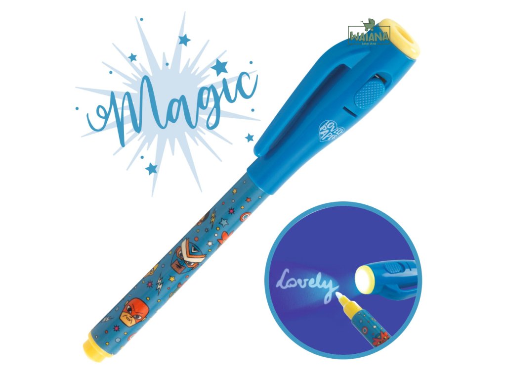 Vstúpte do sveta čarovných správ s perom Ben z kolekcie Lovely Paper! Toto pero píše neviditeľným atramentom, ktorý sa odhalí len pod UV svetlom ukrytým vo vrchnáku. Jednoducho stlačte tlačidlo a vaše tajné odkazy ožijú pred očami. Pero má praktický fixkový hrot a vrchnák s UV svetlom je vybavený klipsom na pripnutie k zošitu alebo vrecku.