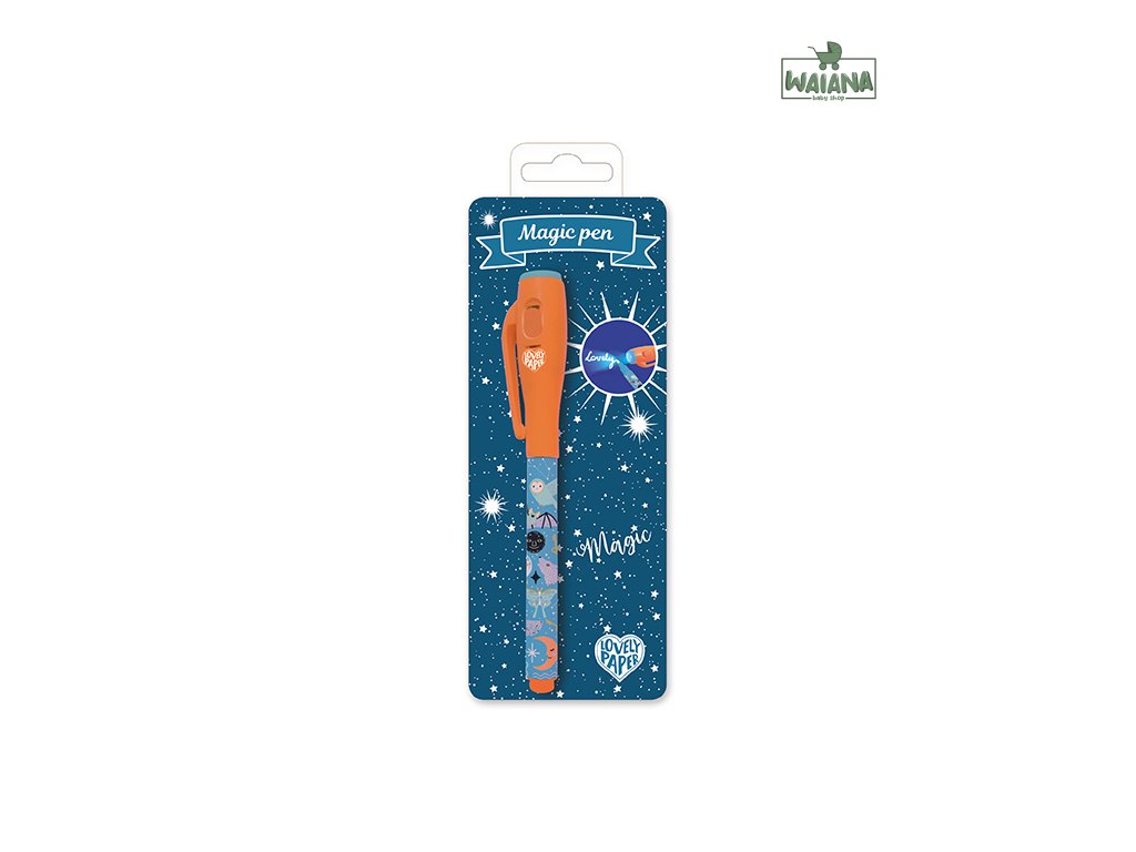 Magické pero Camille Originálne pero s neviditeľným atramentom. Pero s neviditeľným atramentom na písanie správ, ktoré majú zostať v tajnosti.Skvelé na písanie tajných správ. Zápisky sa ukážu až pod UV svetlom. Zdroj UV svetla, tlačidlo na zapnutie/vypnutie svetla a 3 batérie typu LR44 sú priamo vo vrchnáku pera. Vrchnák má praktický klips na pripnutie pera na zošit. Pero má fixkový hrot. Farebné telo pera zdobia krásne ilustrácie. Batérie sú súčasťou balenia. Rozmery: 0,5 x 13 cm.