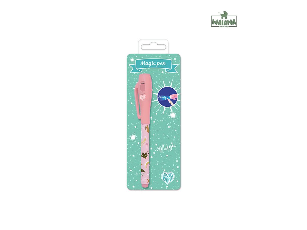 Magické pero LucillePíšte tajné správy a objavujte kúzlaObjavte originálne pero Lucille s neviditeľným atramentom, ktoré je ideálne na písanie správ, ktoré majú zostať v tajnosti. Vaše zápisky sa odhalia len pod UV svetlom, ktoré je integrované vo vrchnáku pera. Stačí stlačiť tlačidlo na zapnutie/vypnutie svetla a vaše tajomstvá ožijú pred očami. Vrchnák obsahuje aj praktický klips, vďaka ktorému môžete pero pripnúť na zošit alebo vrecko. Pero má pohodlný fixkový hrot a farebné telo zdobia krásne ilustrácie.Prečo si pero Lucille zamilujete: